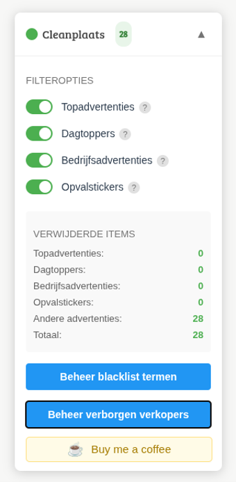 Cleanplaats Marktplaats filter is een handige extensie voor Firefox die ongewenste advertenties van Marktplaats verwijdert. Met deze tool kunnen gebruikers reclames, topadvertenties en bedrijfsadvertenties filteren, waardoor de zoekervaring aanzienlijk verbeterd wordt. De extensie biedt aanpasbare filters, zodat gebruikers hun voorkeuren kunnen instellen voor een advertentievrije omgeving, wat het zoeken sneller en overzichtelijker maakt.